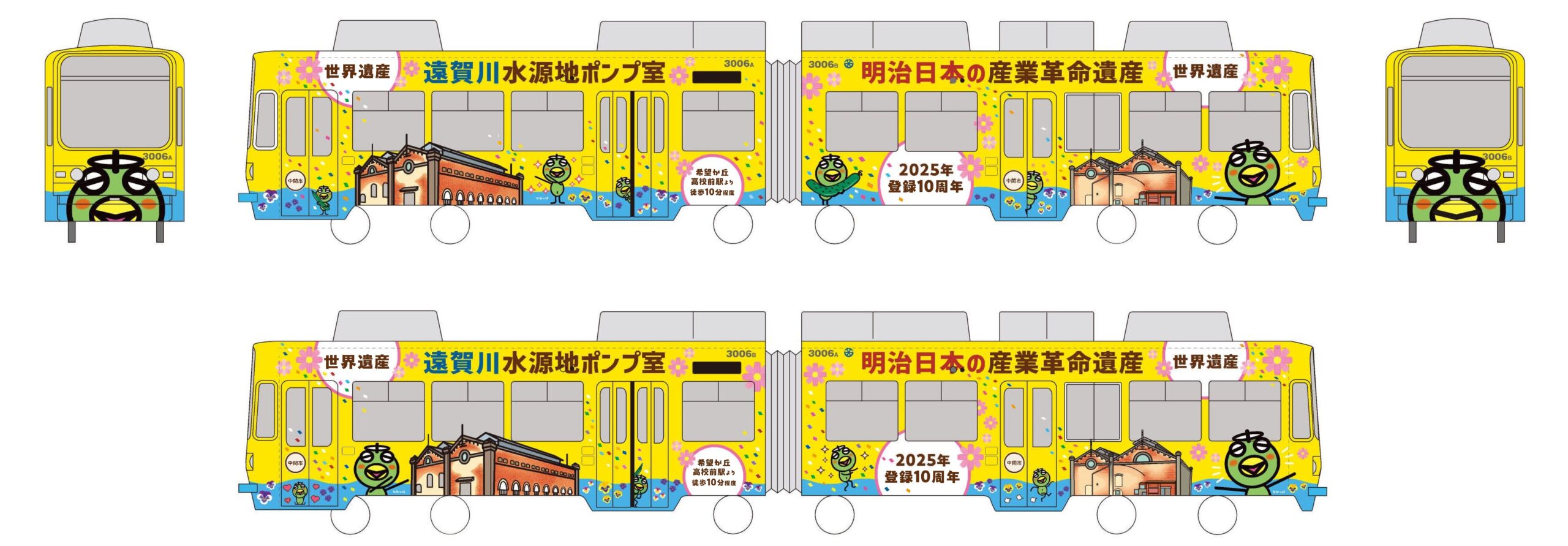 これを記念し、遠賀川水源地ポンプ室の最寄りの交通機関である筑豊電気鉄道にて、「世界遺産10周年記念ラッピング電車」の運行を開始しました。